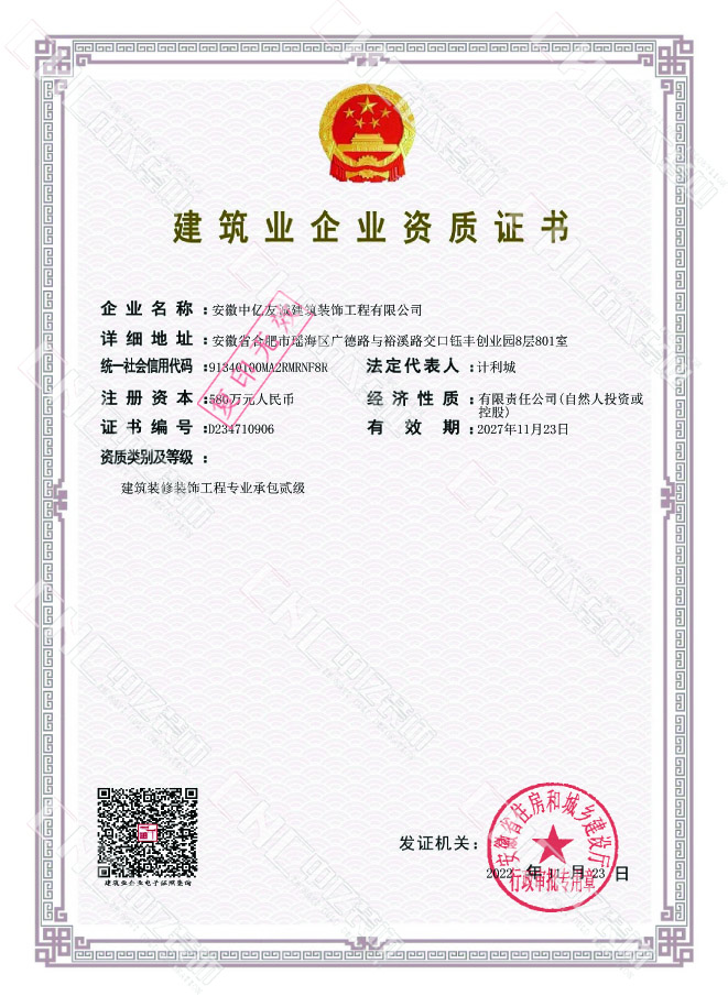 安徽中億友誠建筑裝飾工程有限公司,成立于2018年,是一家專業從事工程設計、施工的裝飾企業,行業著名品牌中億裝飾商標在國家工商行政管理總局商標局注冊,擁有國家二級資質,是中國室內裝飾協會、中國建筑裝飾協會會員單位。公司下設行政部、人力資源部、設計部、市場部、工程部、家具部、網絡部、財務部、宣傳部、培訓部等十余個部門。
